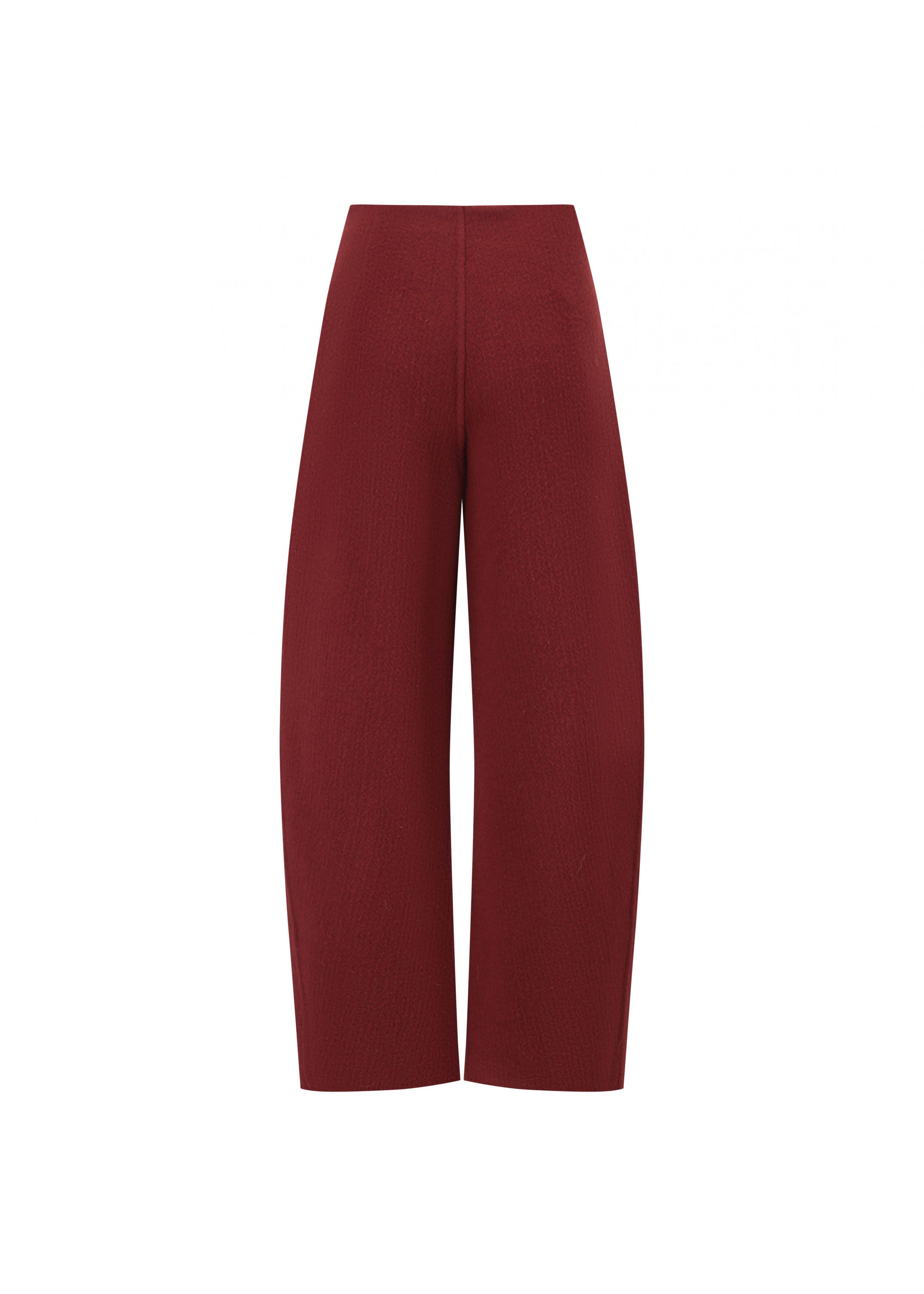 These pants are distinguished by a unique curve-shaped cut, crafted from wool. The relaxed, wide-leg silhouette offers effortless versatility, making them a timeless expression of elegance.