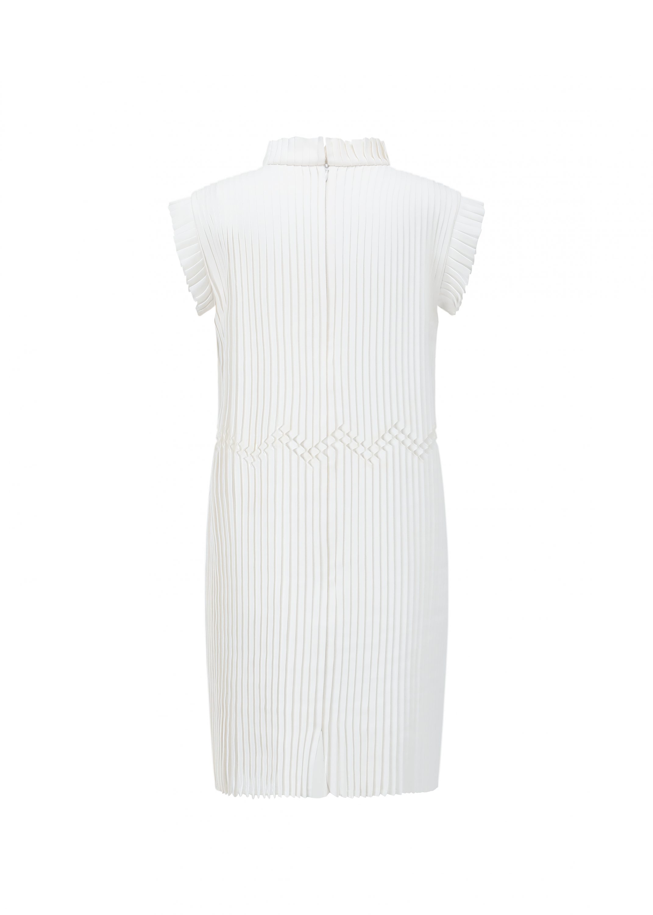 A sculptural sleeveless mini dress featuring intricate pleated details. Crafted for a precise yet fluid silhouette, it combines modernity with timeless refinement.