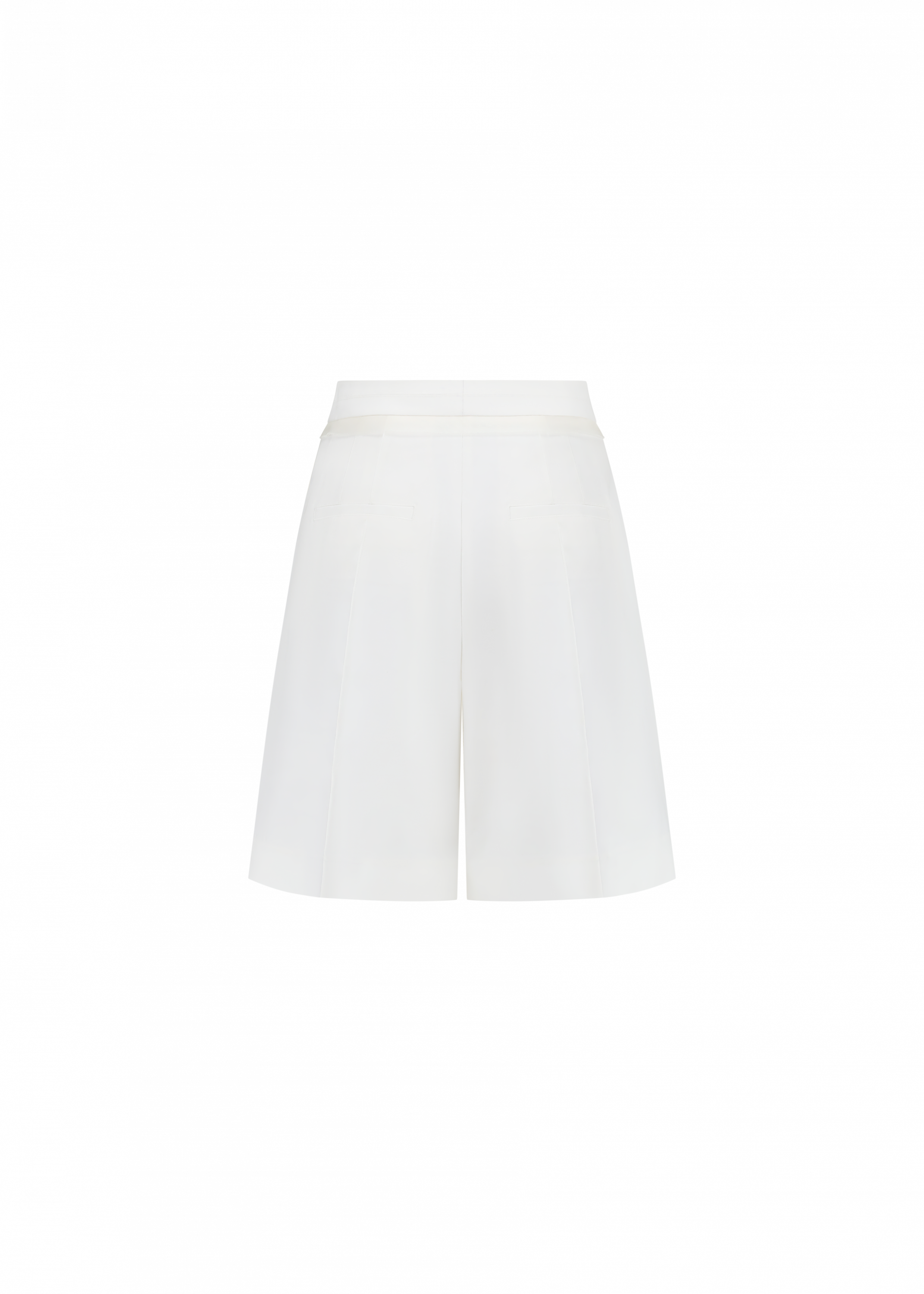 Silk-wool tailored pants in a wide, straight cut, falling to the knee.