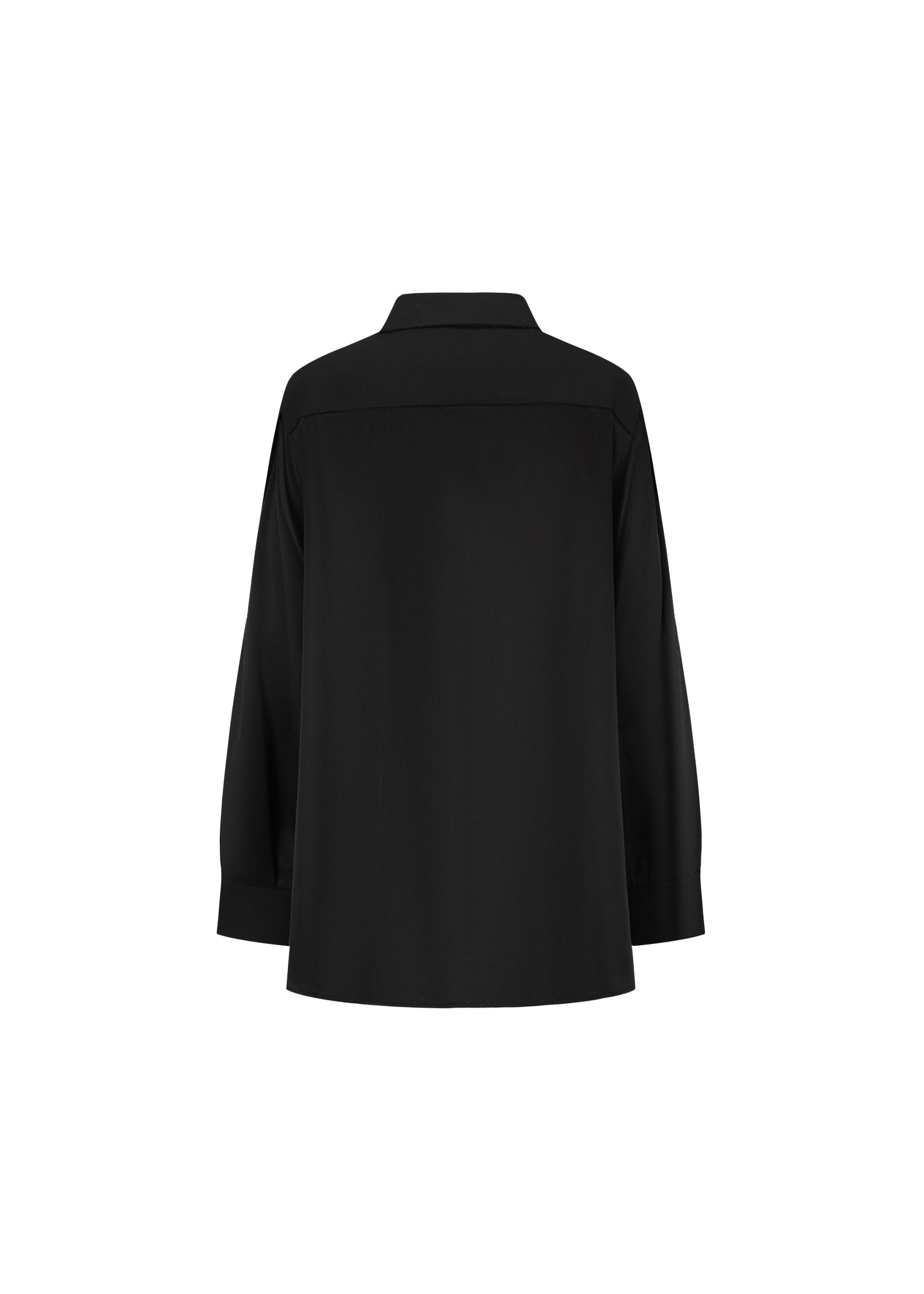 This refined-silk-blended shirt is defined by a V-shaped front that brings an architectural silhouette to its noir elegance.