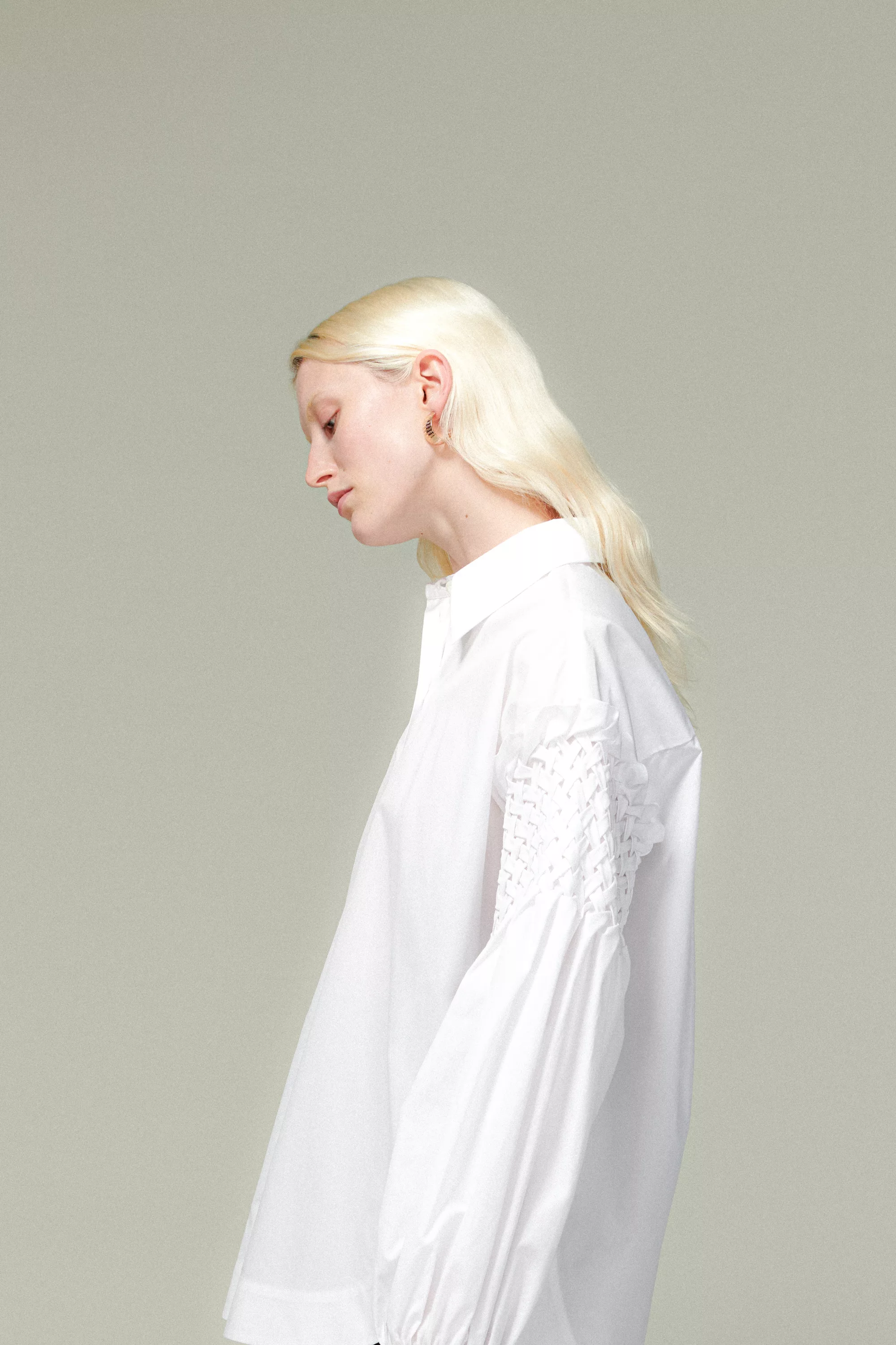 A timeless cotton blouse with a modern twist. Featuring a smocked detailing on voluminous sleeves, it blends structure with softness for an elevated everyday look.